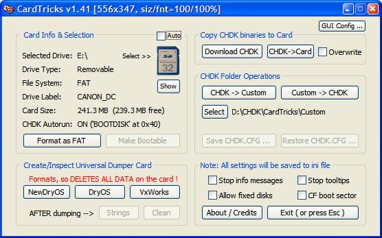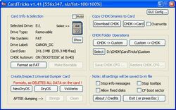 - CardTricks for DSLR / CF version 1.45 - a utility to make FAT16 and FAT32 CF cards bootable