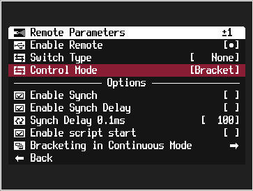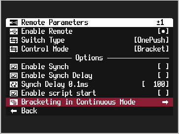 A menu link to provide convenient access to the bracketing parameters used in USB remote bracketing mode.