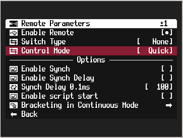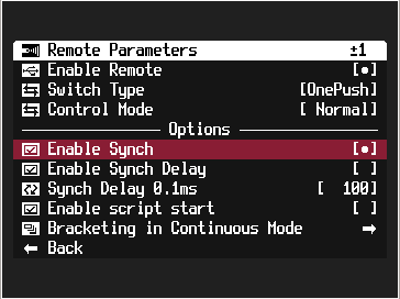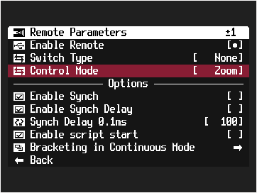 To enable USB remote operation, go to the CHDK Settings > Remote Parameters menu and select Enable Remote.
