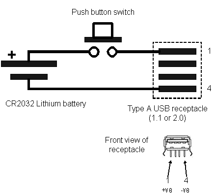 A popular method for remotely triggering CHDK-enabled cameras involves constructing a simple triggering device from a 3V CR2032 coin battery, a USB extension cable, and a push switch. The camera's USB cable is then attached to the camera at one end and to the triggering device by the other end.